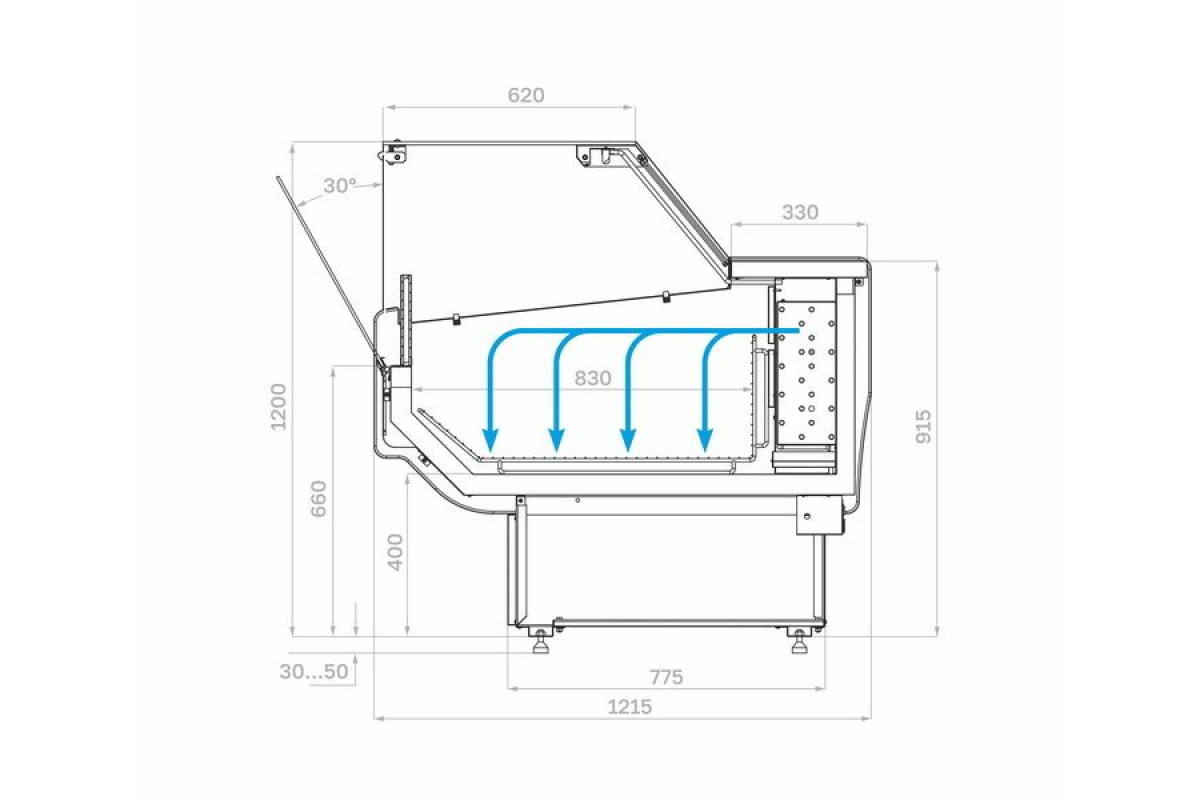 Диапазон регулировки опорных ножек, мм: 30-50