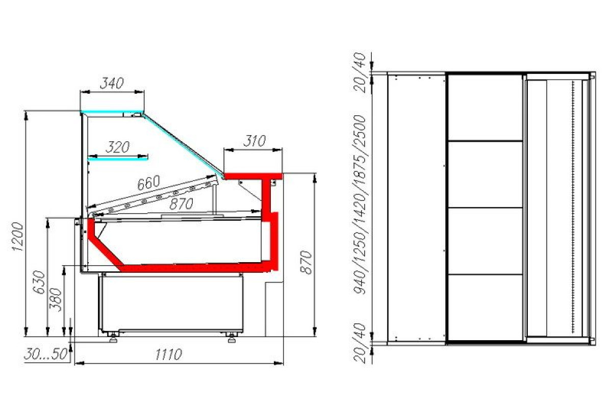 - глубина выкладки — 870 мм;