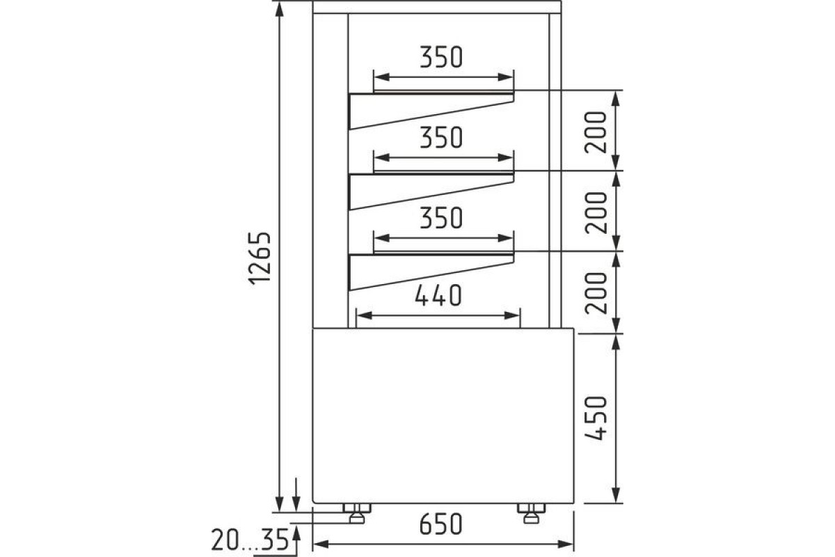 - Глубина выкладки 440 мм + 3 полки по 350 мм каждая;