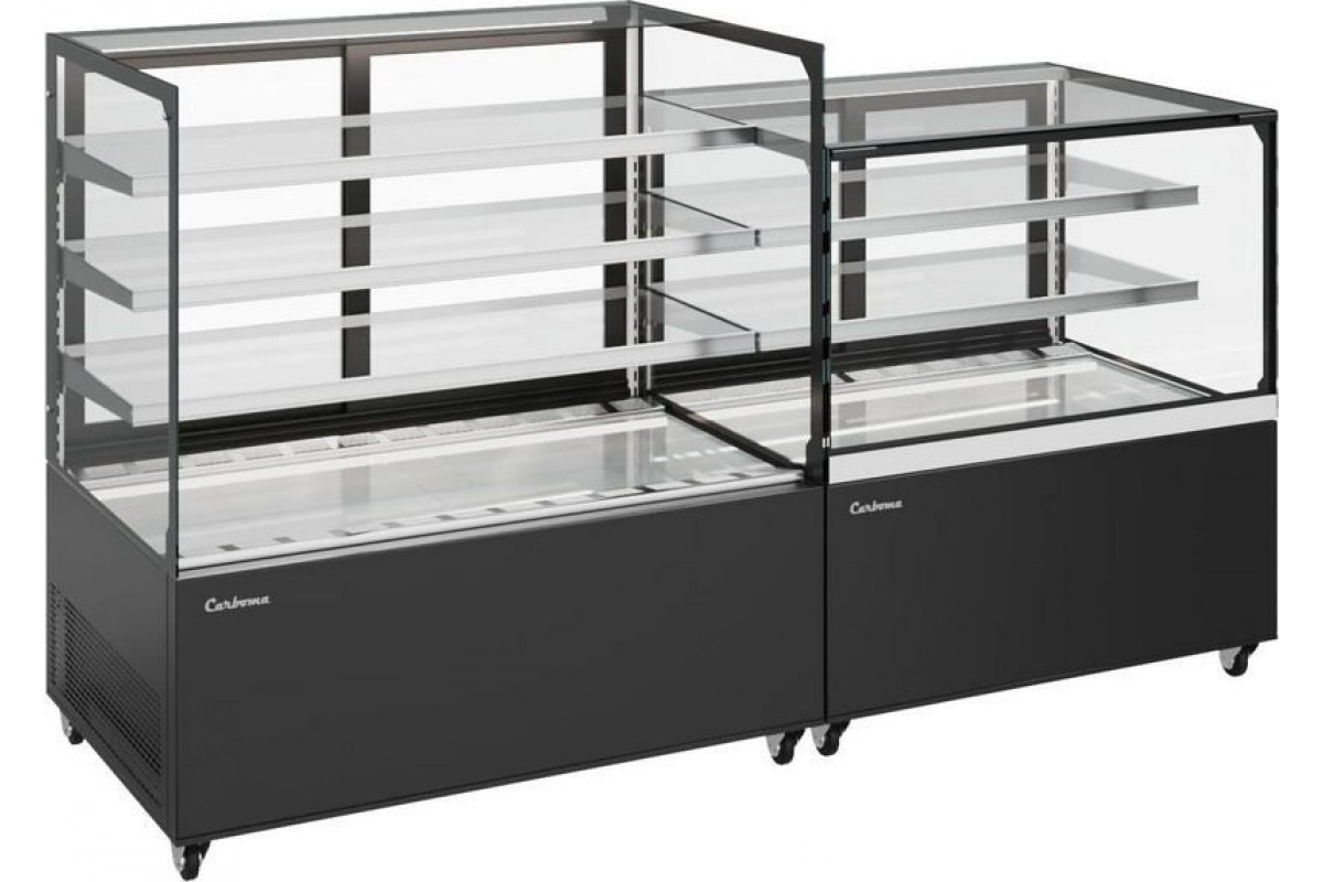 Витрина нейтральная напольная Carboma KC78-110 N 1,2-1 (9005) витрины COSMO идеально подходят для любой конфигурации помещений кондитерской, пекарни, кафе. Дают возможность легко менять и расширять концепцию, варьируя пространством и объёмом экспозиции продуктов. Прямые линии и отсутствие соединительных планок придаёт легкость и эффект бесконечности.