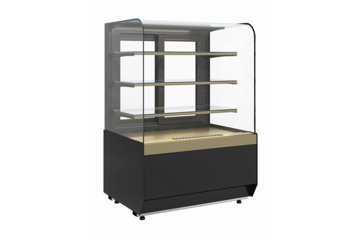 Витрина нейтральная напольная Carboma KR70 N 1,3-1 LIGHT (9005-0109) предназначена для кратковременного хранения и демонстрации готовых блюд и напитков. Рекомендуется к применению в пекарнях, кондитерских, супермаркетах и на других предприятиях торговли и общественного питания. Модель оснащена 3-х сторонним радиусным безрамным остеклением и раздвижными задними створками. Радиусное фронтальное стекло обеспечивает полный обзор продукции на всех полках, а также позволяет создать торговый ряд без стыков.