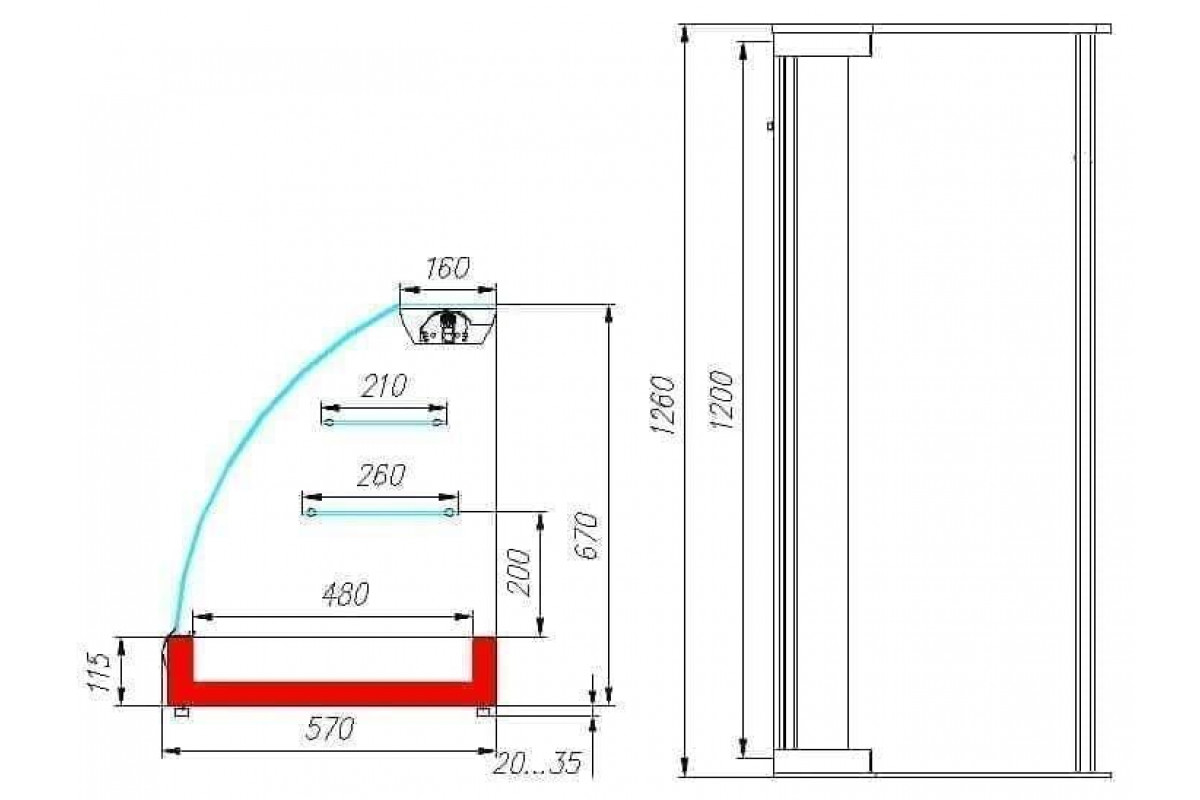 - Глубина выкладки 480 мм + 2 полки 260 мм и 210 мм;