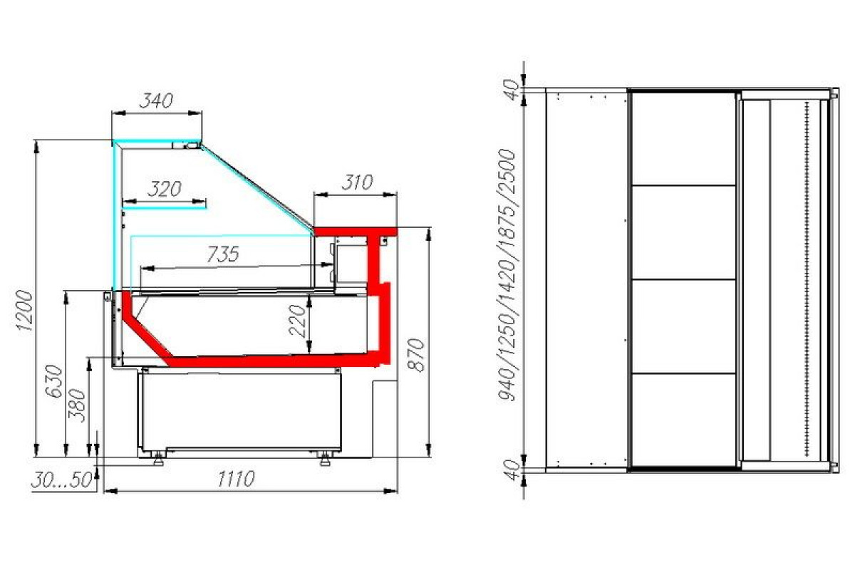 - 2х ступенчатые поддоны для выкладки. Общая высота поддона -120 мм, общая глубина - 480 мм;