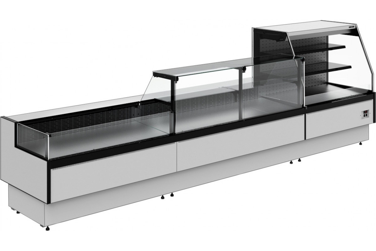 Модель без боковин предназначена для установки нескольких витрин в линию и не может использоваться как отдельностоящая. При заказе нескольких моделей для установки в линию достаточно приобрести две боковины для первой и последней витрины.