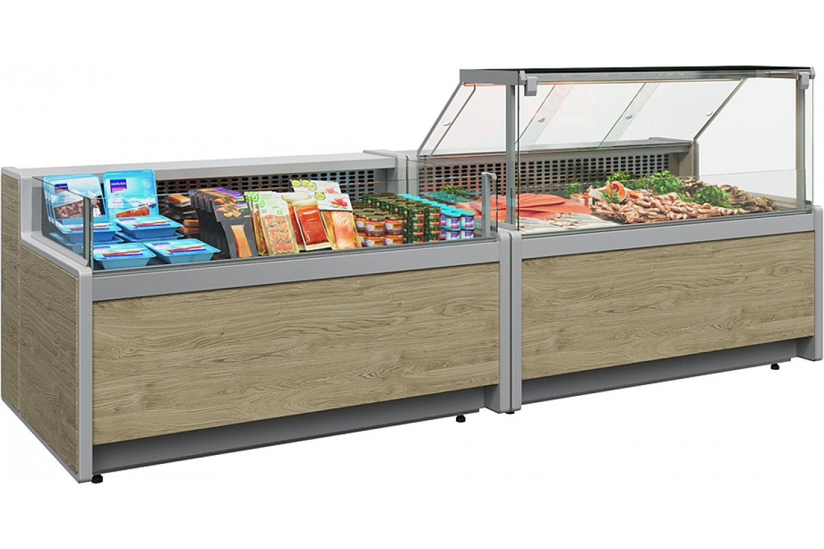 Отдельностоящие витрины приобретаются только вместе с боковинами. При заказе нескольких витрин с одинаковым температурным режимом для установки в линию достаточно заказать 2 боковины на всю линию.