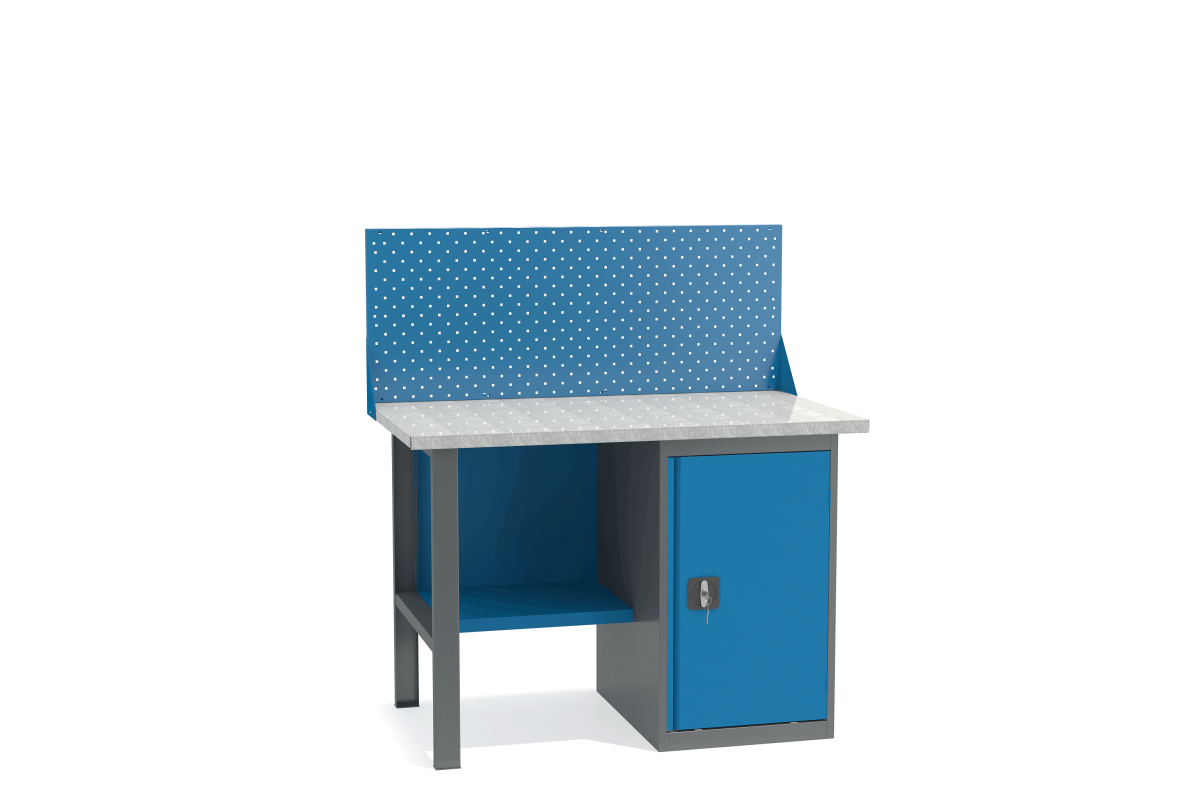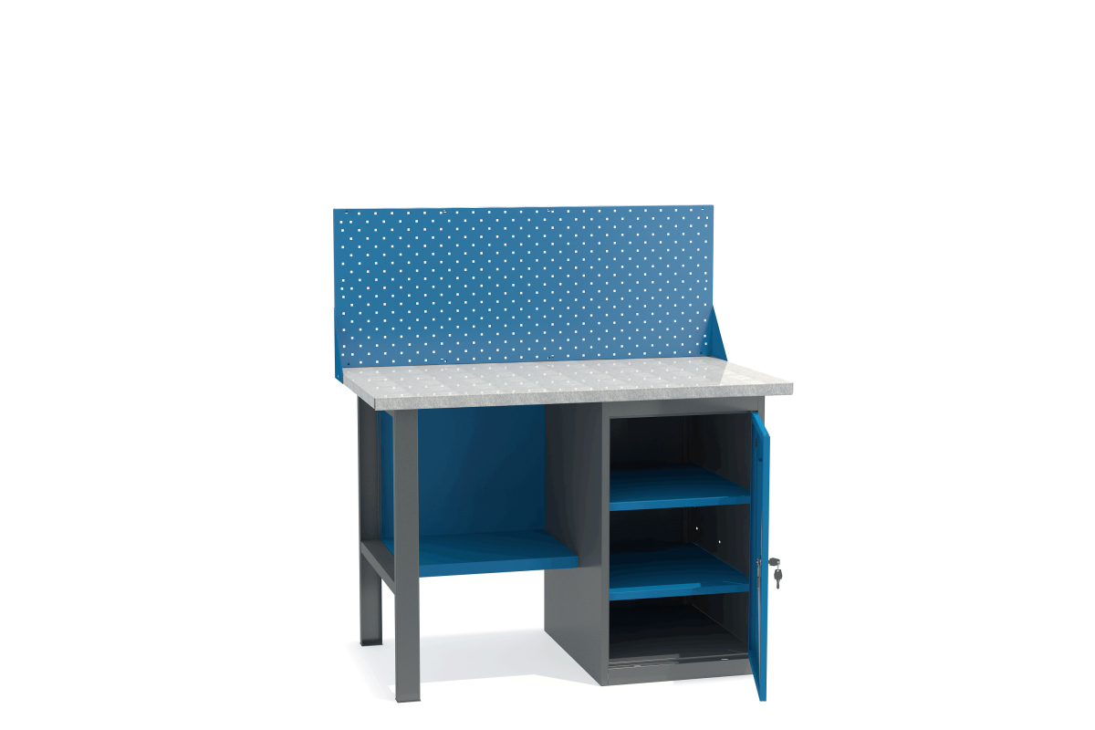 - Верстак укомплектован тумбой с полками.