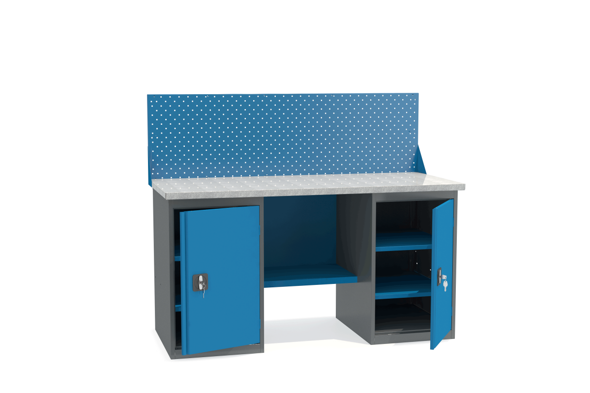- Верстак укомплектован двумя тумбами с полками.