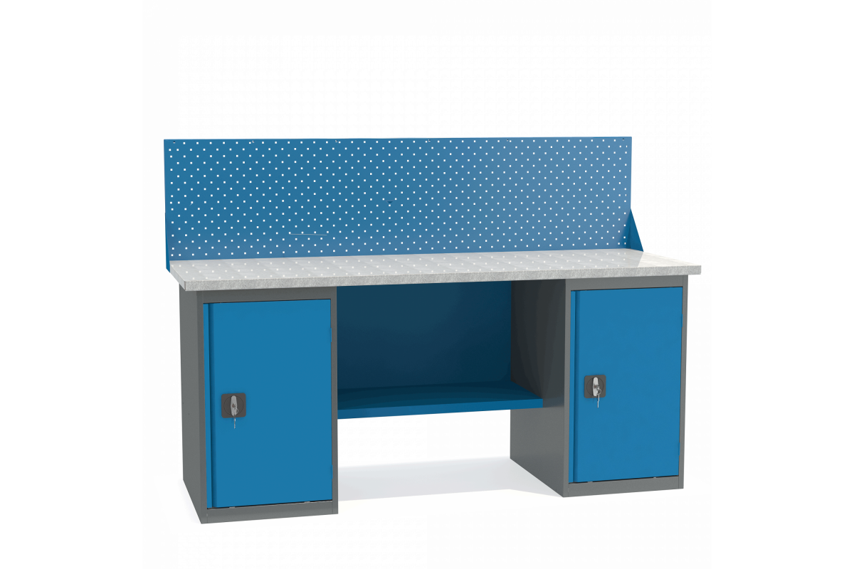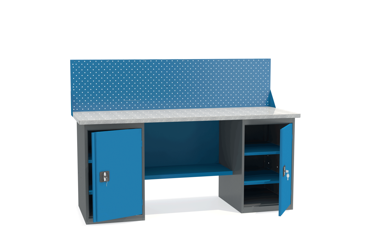 - Верстак имеет надежную модульную конструкцию с усиленной столешницей (плита МДФ 25мм, покрытая листом оцинкованного металла).