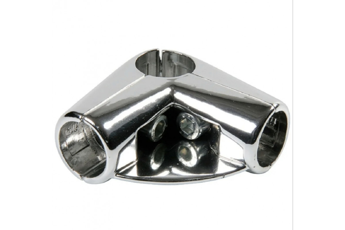 Зажим поворотный малый для труб в 4-х направлениях d=25мм, хром, соединяет 3 трубы, одна из труб по ..