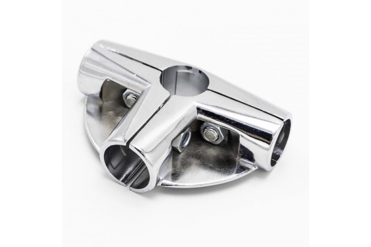 Зажим для труб в 5-ти направлениях d=25мм, хром, соединяет 4 трубы, одна из труб по центру проходит ..