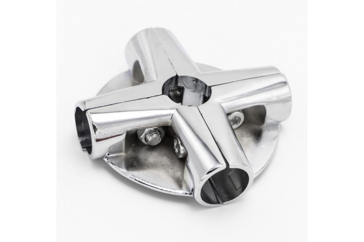 Зажим поворотный малый для труб в 4-х направлениях d=25мм, хром, соединяет 3 трубы, одна из труб по ..